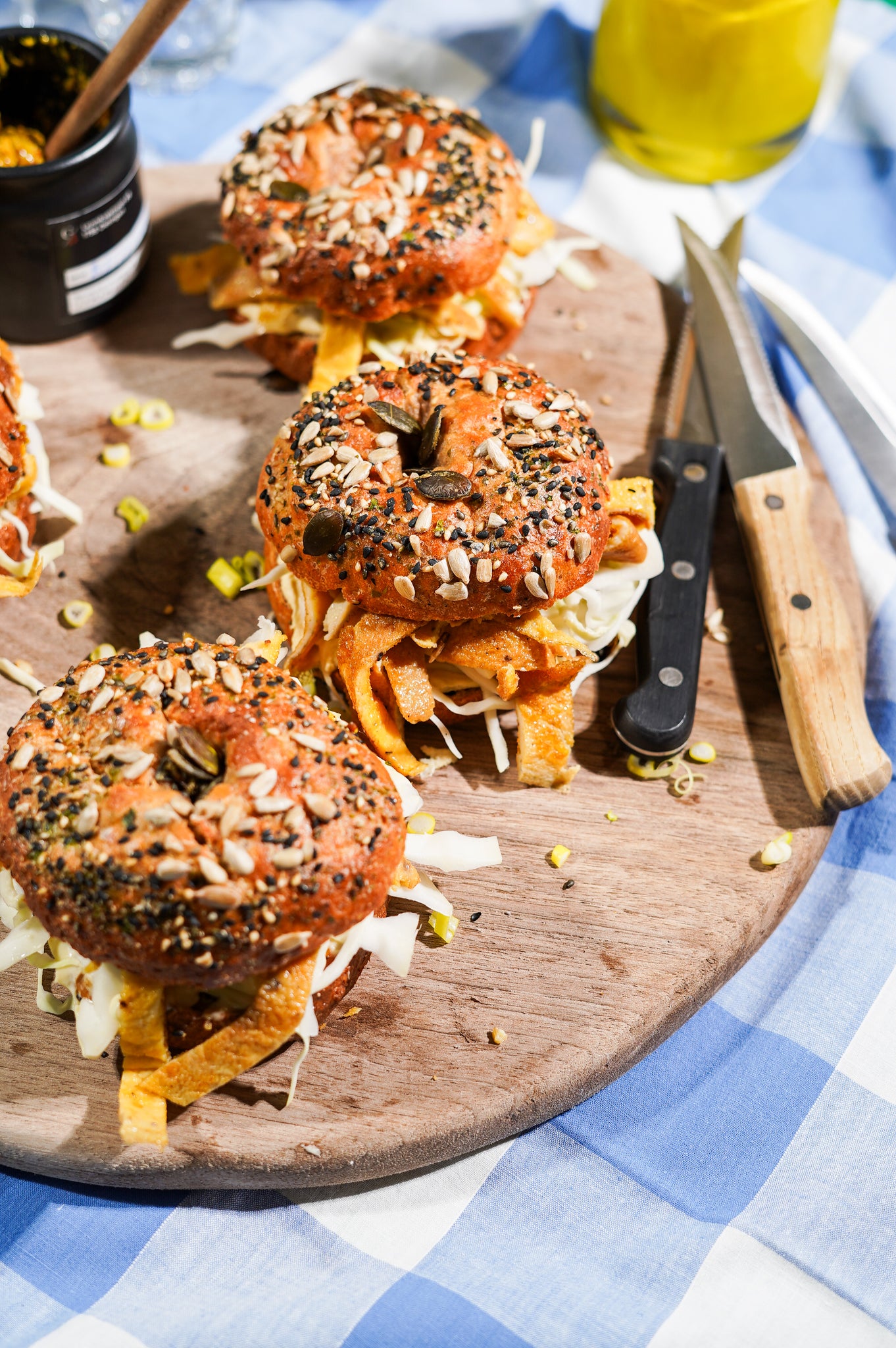 separately. - Warm up:Heat bagels in the oven at 160°C for 10 minutes or in
