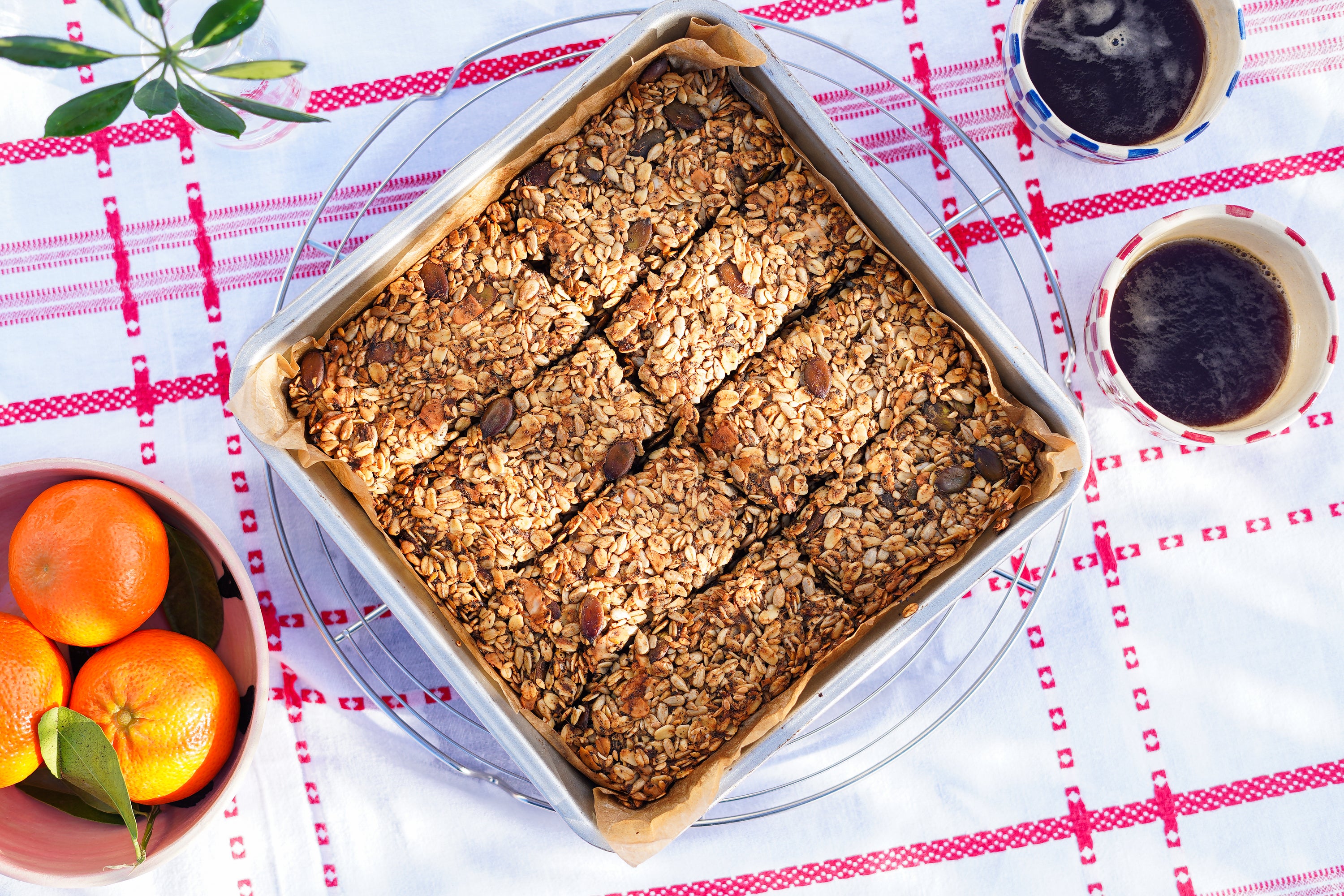 Cut or break the cooled granola into bars and store airtight.