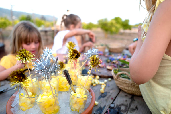 crushed ice in a bowl and small glasses