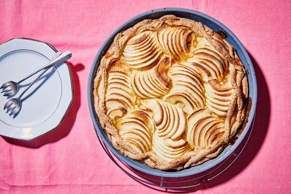 Brush some melted butter over the apples and decorate the sides with crisscross strips of dough.