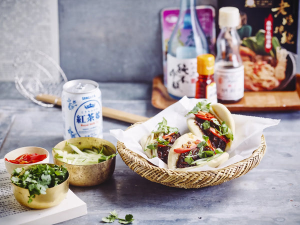 Open the warm buns slightly, fill with the stew, finish with strips of cucumber, fresh coriander, and sliced chili.