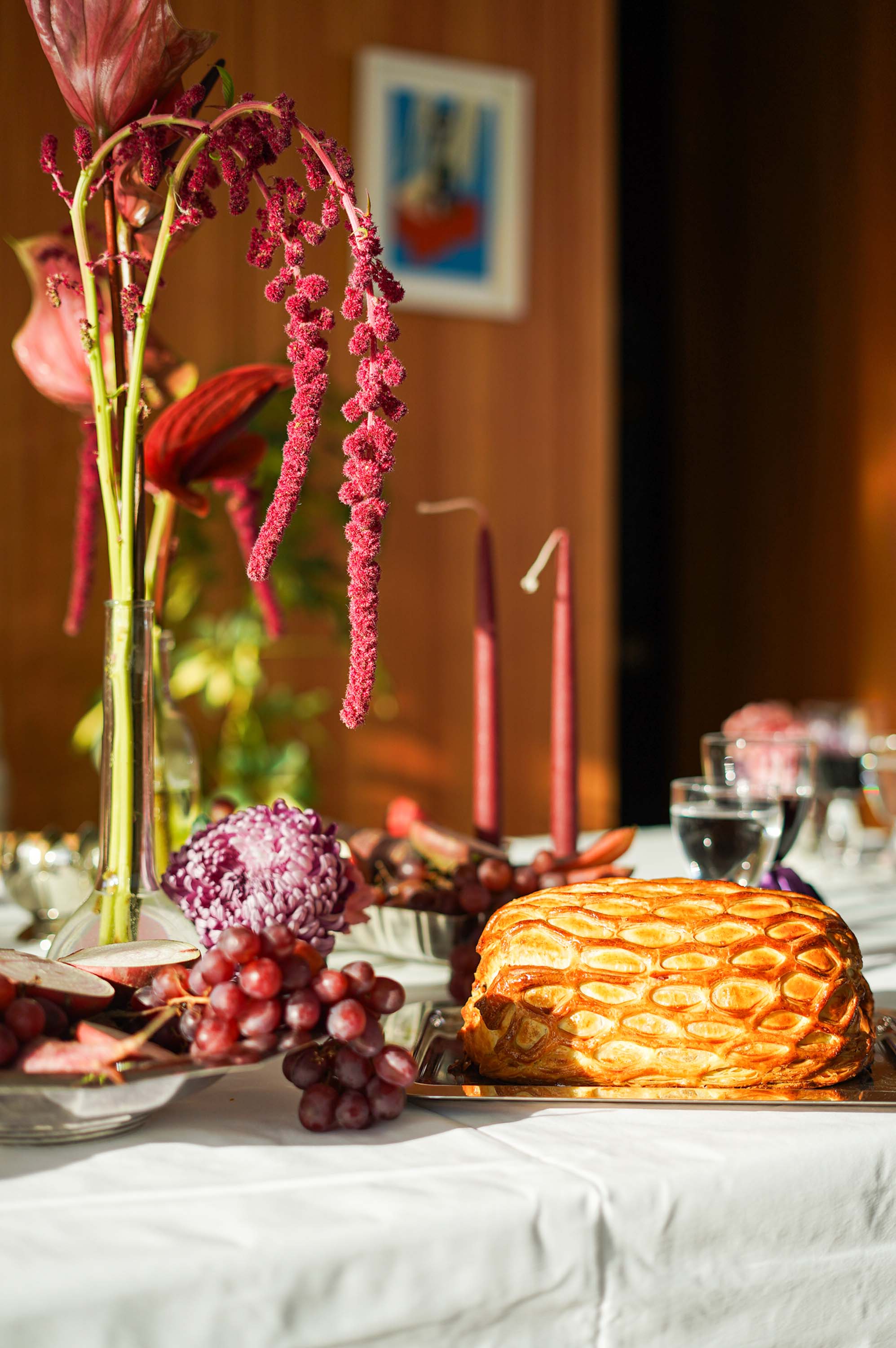 Packing puff pastry: Roll out the puff pastry (cold temperature is important!). Remove the meat from the foil and place it on the dough. Roll up tightly and fold the sides at the bottom. Place on a baking tray lined with baking paper, seam side down.