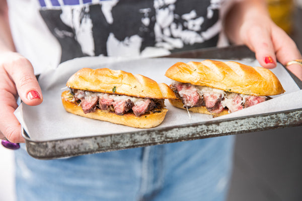 Generously top the 4 bottom halves of the rolls with the caramelized onions, entrecôte strips, and grated provolone. Put them back in the oven and bake for another 2 to 3 minutes until the cheese is melted.