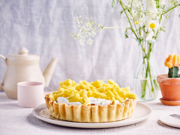 Coconut flan cake with pineapple and lime