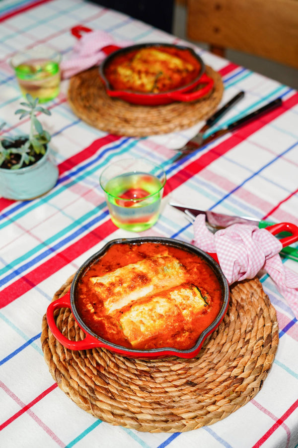 Zucchini as cannelloni sheets? Yes, please! With the KitchenAid sheet cutter, you can make super-thin zucchini ribbons that you roll up around a spicy filling of ground chicken and leftover zucchini. Cover everything with a layer of tomato sauce, top with some mozzarella, and pop it in the oven. Delicious, light, and surprisingly simple—and actually gluten-free!