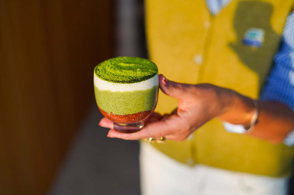 Creamy Protein Matcha Chia Pudding with Strawberry Jam
