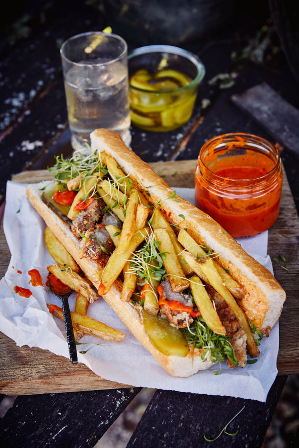 Deluxe mitraillette, crispy pork, sauce Maison & whisky-soda