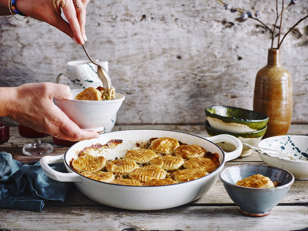 - Place the cold vol-au-vent in a low baking dish and press down as evenly as possible.
