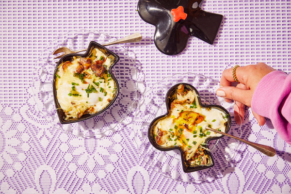Oeuf en cocotte with shiitake and Comté cheese