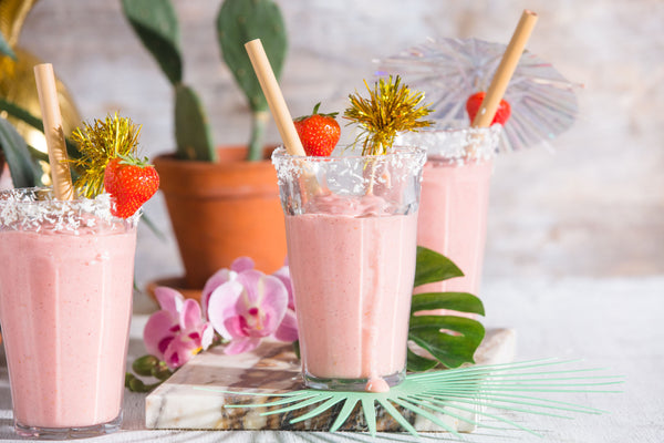 Run the rim of your glasses over a piece of sliced fruit and dip in the coconut flakes.