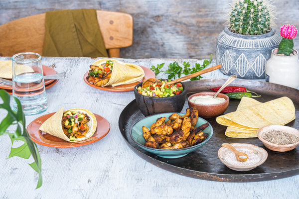 Fajita with chicken, mango bell pepper salad, and jalapeño mayonnaise