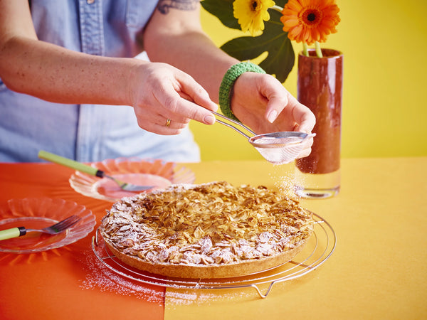 Put the frangipane dough in a piping bag and pipe evenly around the bottom.