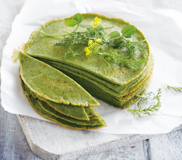 Make sure that the pancakes stay nice and green! Bake on a medium heat and use oil, no butter, because pancakes will turn brown brown, and that is just not the intention here.