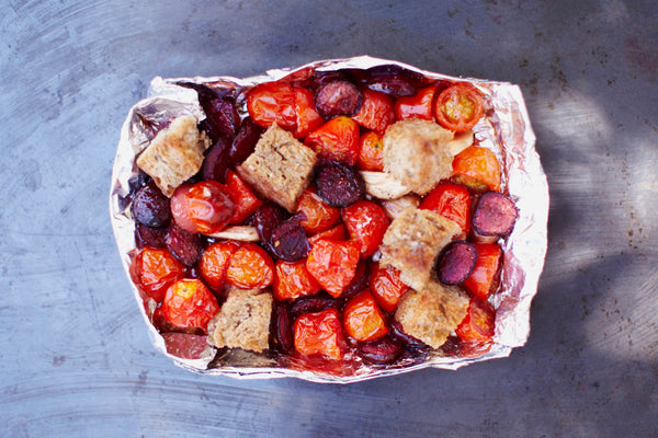 What do you need?1 slice of bread 1 tbsp olive oil Pepper from the mill 100 g cherries 100 g cherry tomatoes 1 tbsp honey 8 almonds