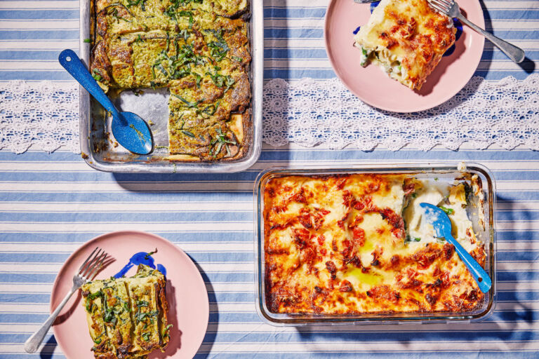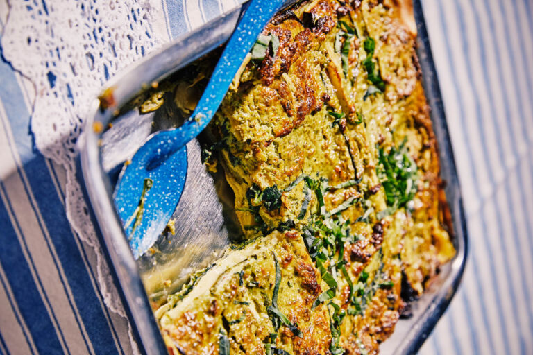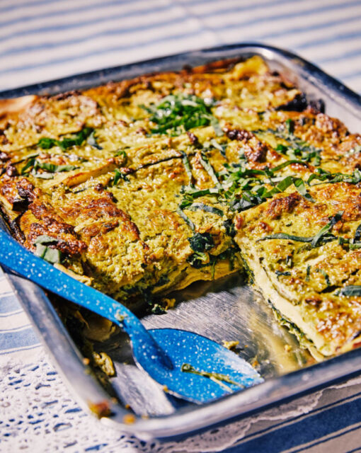 Lasagna with zucchini, spinach, and pesto