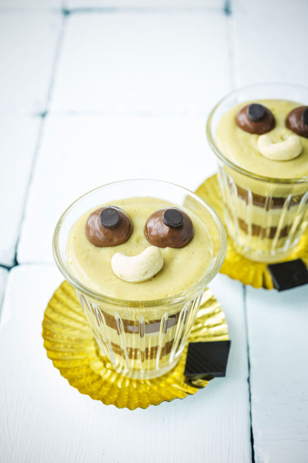 Make a smiley with a few chocolate chips and cashews.