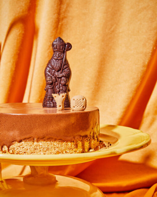Melt the chocolate in a bain-marie or in a large bowl in the microwave. (If using the microwave, stir regularly!) Add the melted chocolate in two batches to the semi-whipped cream and stir well after each addition. When it is almost fully mixed, add the speculaas.