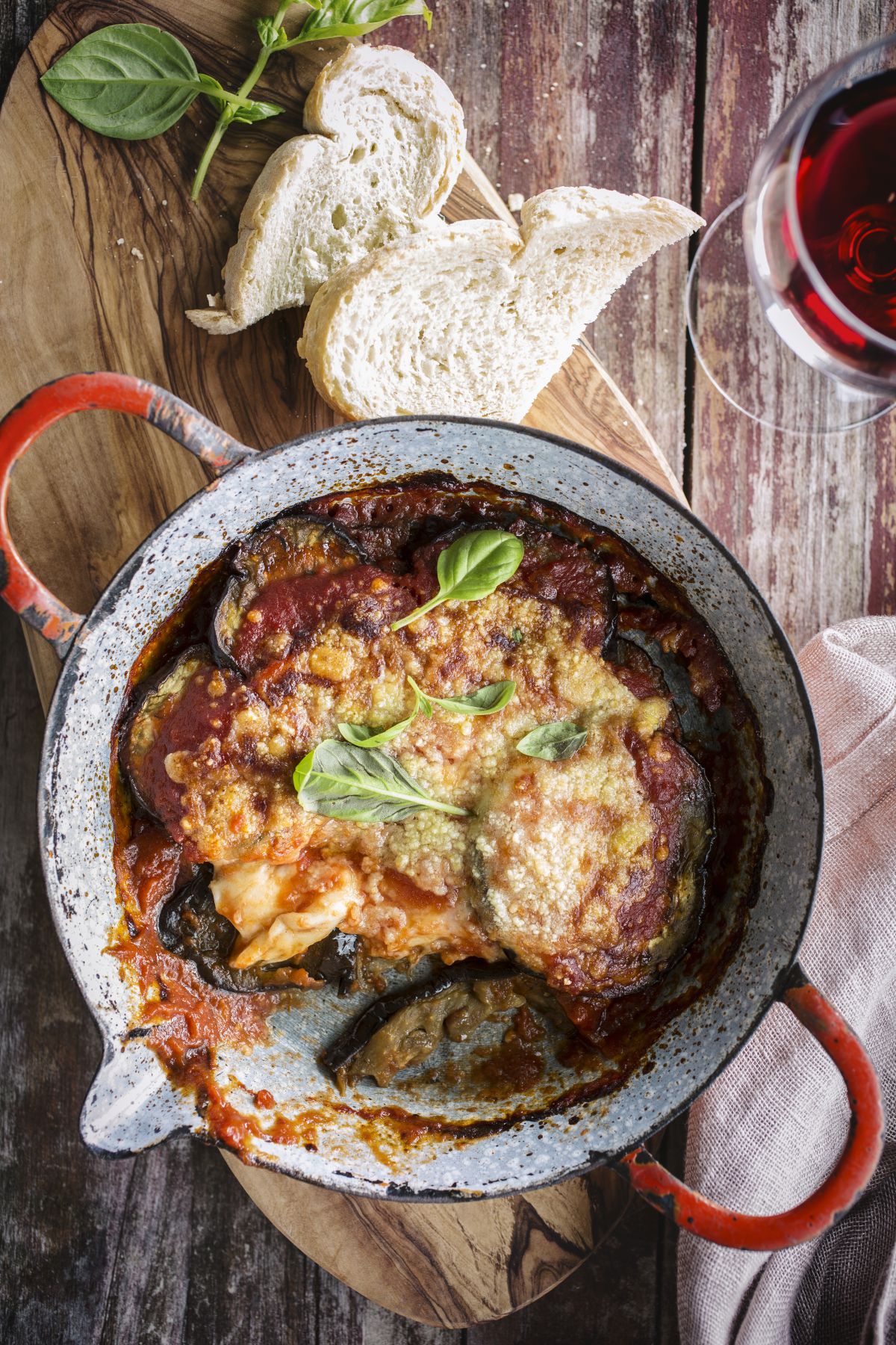Add another layer of eggplants, provolone, and the rest of the tomato sauce in the dishes.