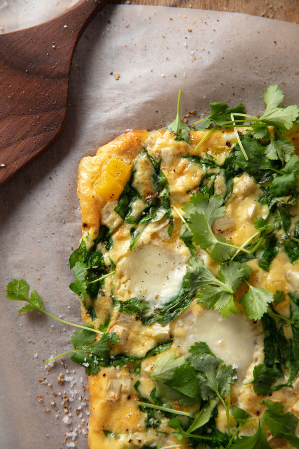 Omelet with butternut squash, celeriac, and spinach