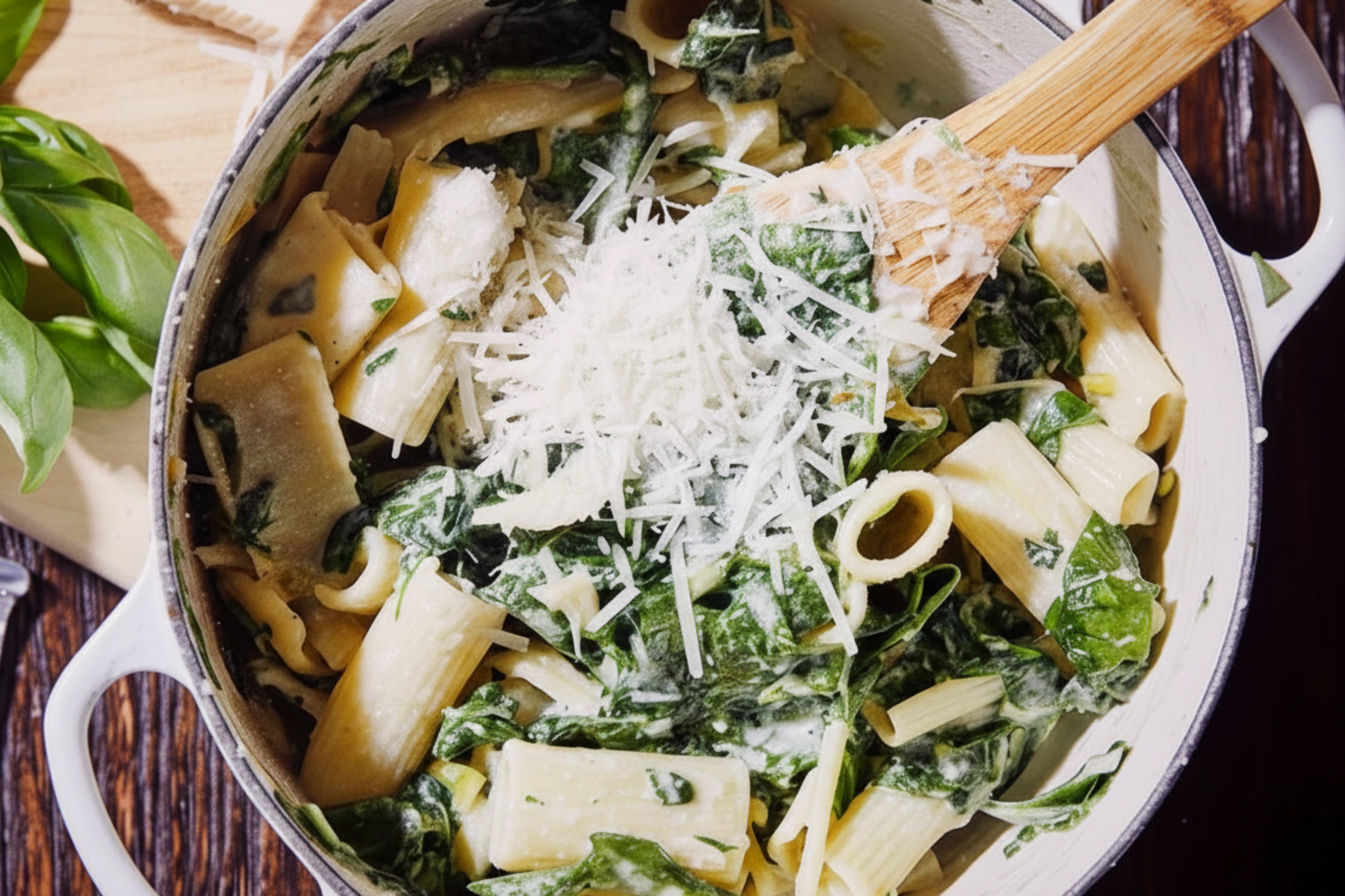 One pot pasta with spinach in cream sauce