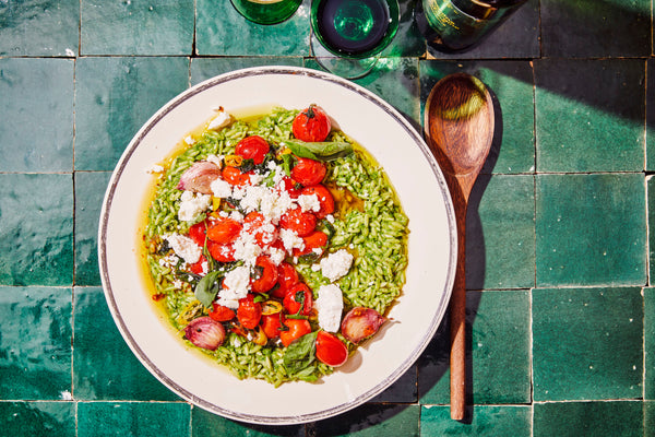 Orzo with spinach, tomato, and feta