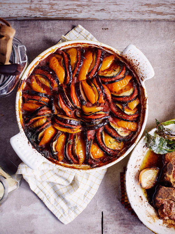 Cover the dish with aluminum foil and bake for 40 min in an oven at 195°C.