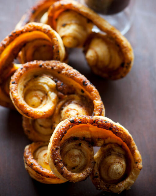 Add a pinch of nutmeg or cardamom to the sugar cinnamon mix for an extra warm taste. Make sure that the puff pastry is well cold before you start, so that it is easy to edit. Use a sharp knife to neatly cut the dough into slices.