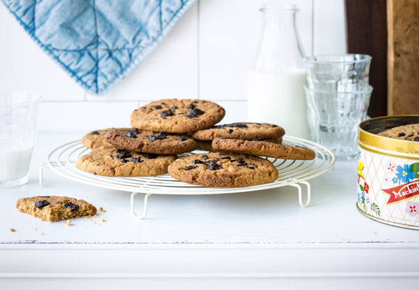 Sprinkle the chocolate over the cookies.