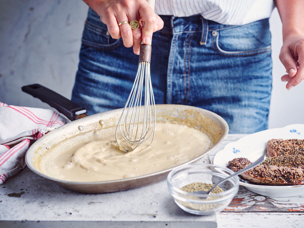 Once nicely reduced, add the reduced cream, whisk everything well, taste, season with a pinch of salt if needed, and you're done!