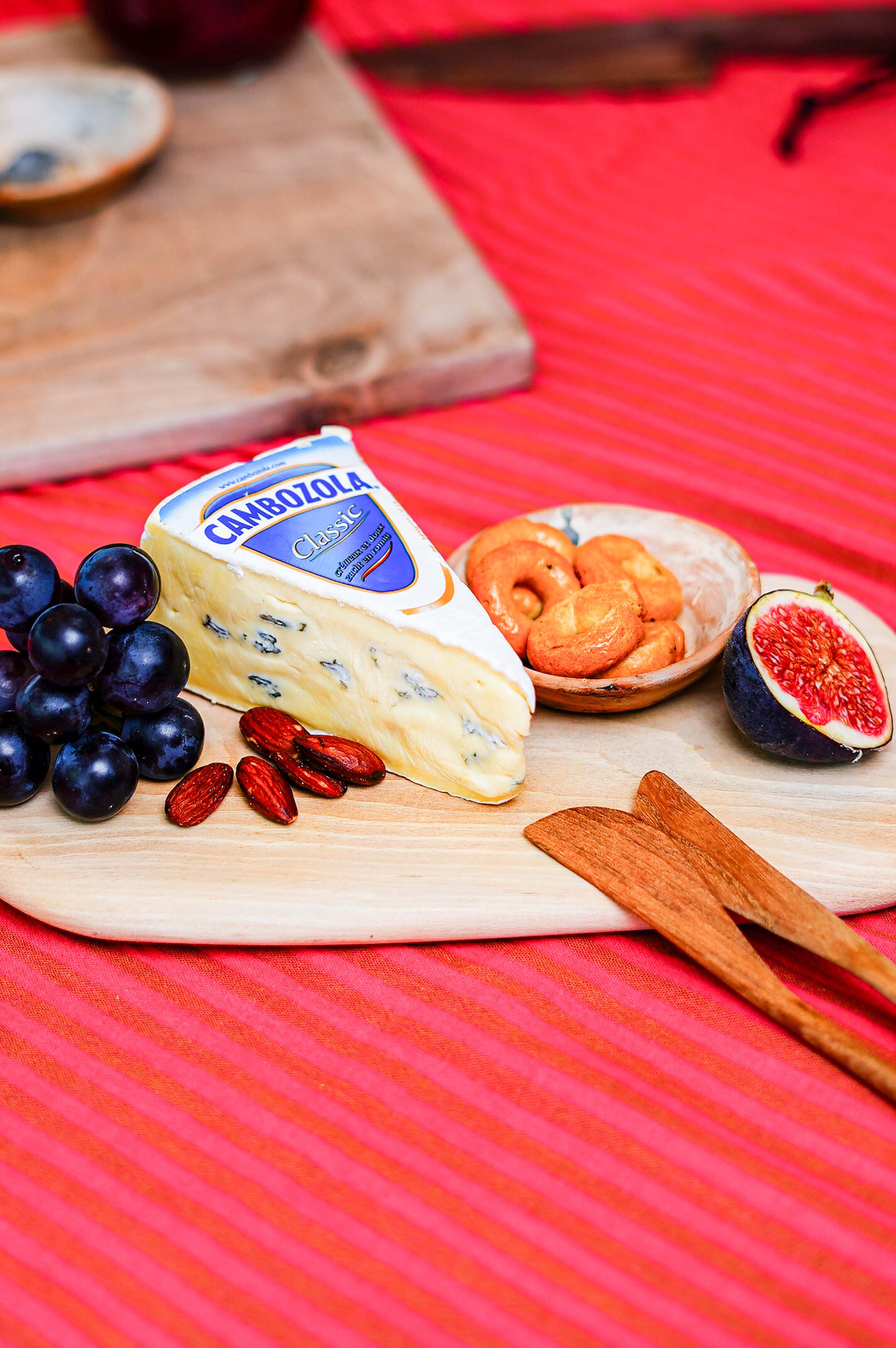 Finish your board with nuts, olives, grapes, crackers and pickles with ham.