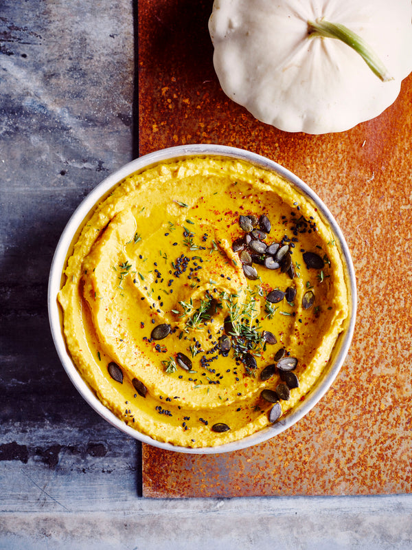 Spicy Halloween hummus made from pumpkin