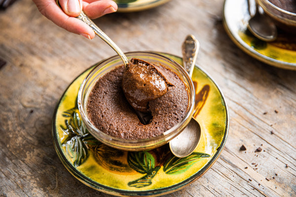 Melt the butter and chocolate in a bain-marie.
