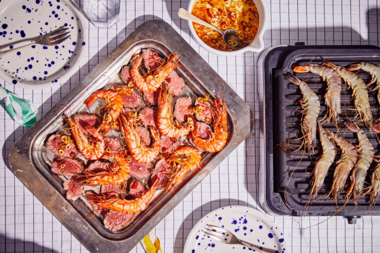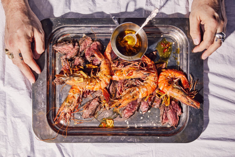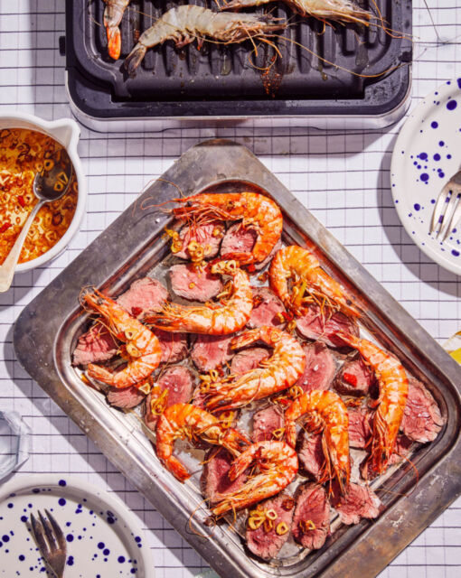 Surf & Turf with Onglet and Prawns
