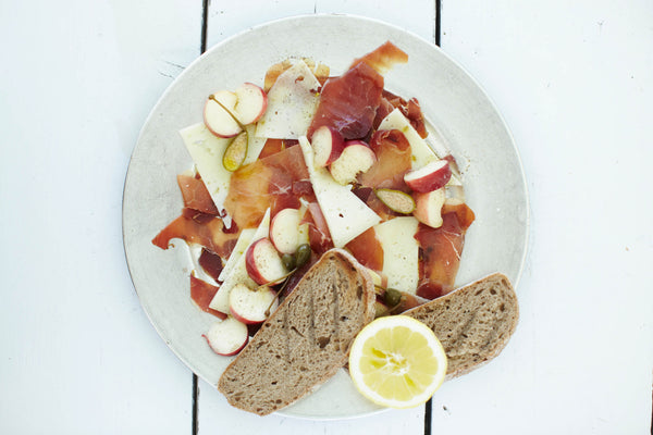 Tapas platter with Iberico ham, Manchego and peach