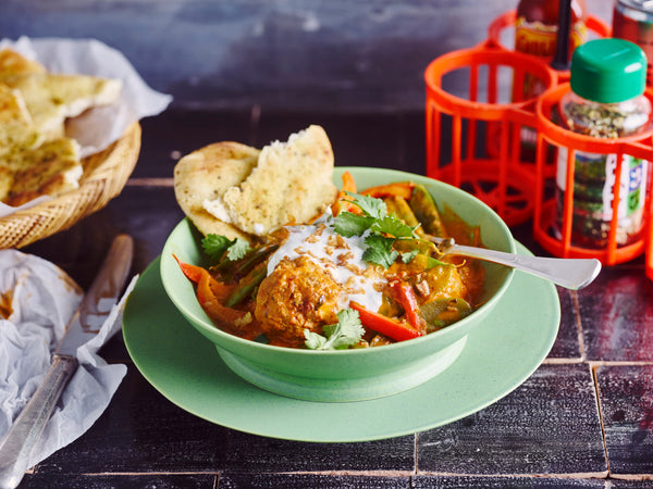 Tikka masala meatballs with naan