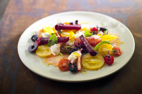350 g various types of tomatoes: yellow and red cherry tomatoes, Roma tomatoes, vine tomatoes, Coeur de Boeuf…