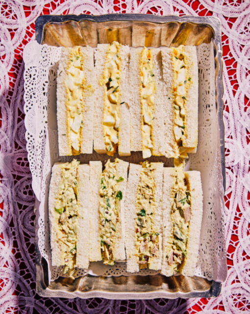 Tramezzini with chicken curry salad and egg salad