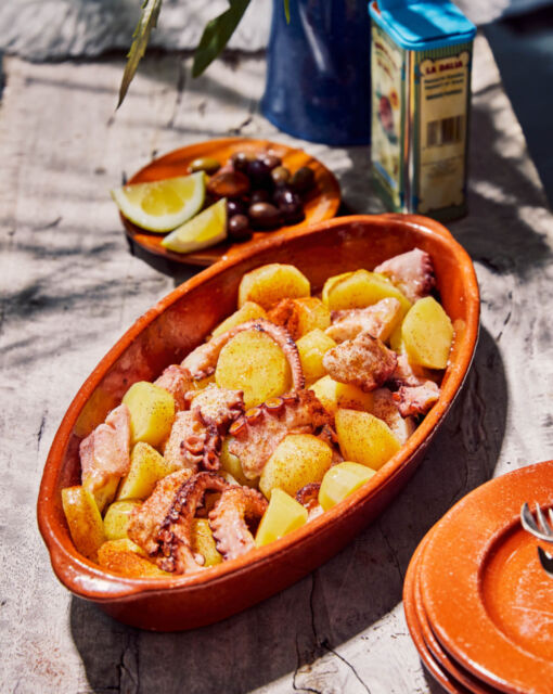 Warm squid salad with potatoes and smoked paprika