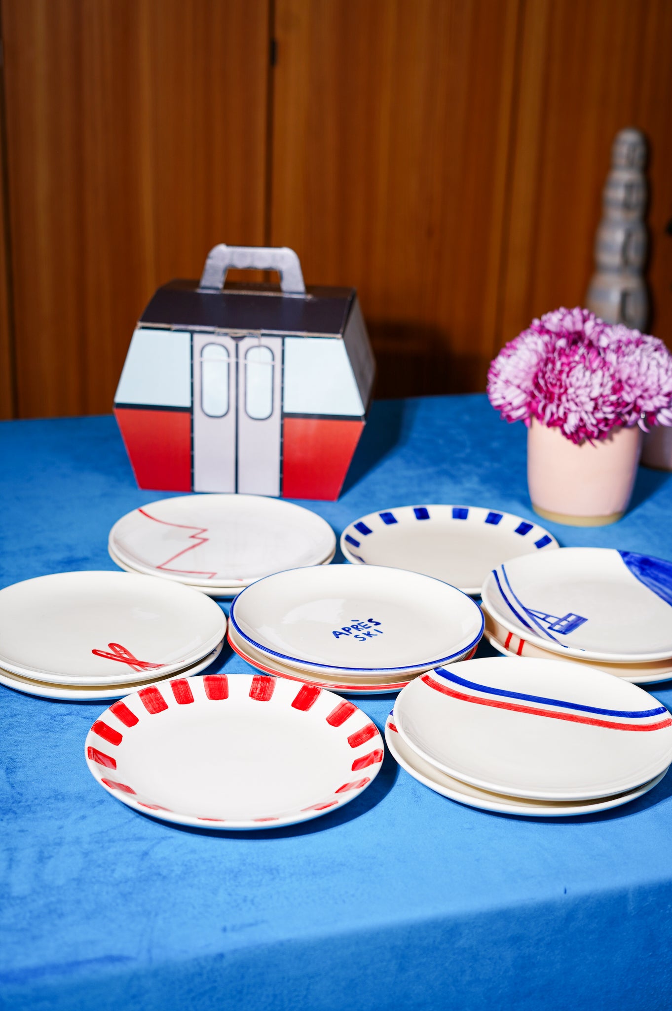 Four series, each with 12 red-blue plates that radiate the charm of snowy mountain peaks. Perfect size of 22.5 cm for breakfast, appetizer, or dessert — and instant coziness on the table.