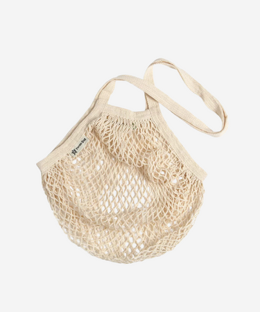 This reusable net bag made of 100% organic Fairtrade cotton is strong, stylish, and multifunctional. Ideal for groceries, storage, markets, or just taking to the beach. Thanks to the long handles, you can easily carry it over your shoulder or hook it onto a stroller.