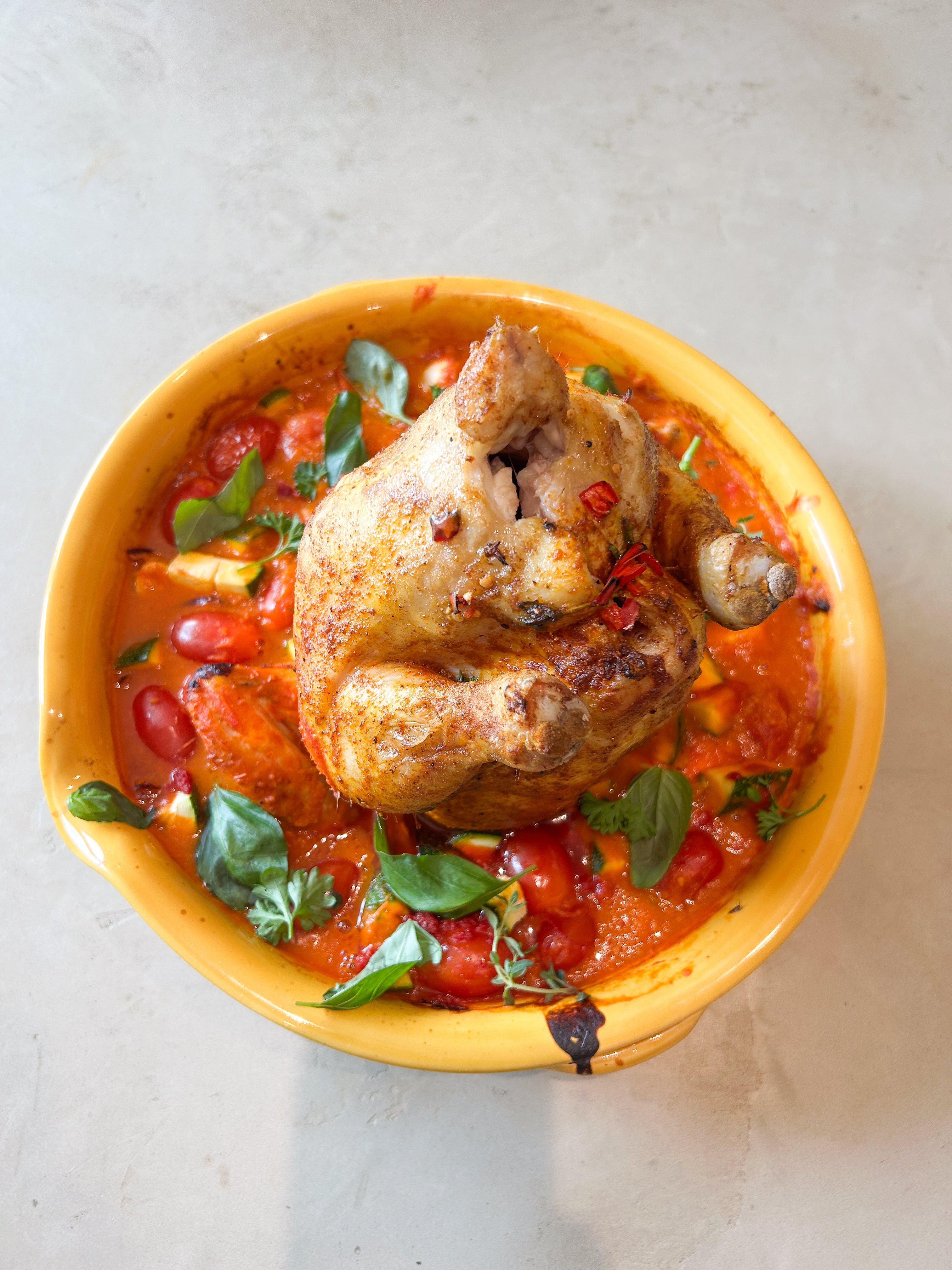 The Foolish Frango chicken holder from Val Pottery? That’s really a must-have for every hobby chef, guys! Handmade ceramics that cook your chicken in the oven perfectly: juicy on the inside, wonderfully crispy on the outside.