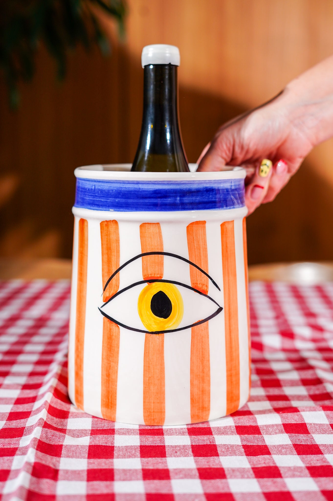 Koude wijn of champagne serveren mag er ook mooi uitzien. Deze handgemaakte wine chiller uit Portugal is zo'n stuk dat meteen de aandacht trekt aan tafel. Kleurrijk, speels en volledig met de hand gemaakt, zonder machines. Elk stuk is dus net even anders, en dat is precies wat hem zo leuk maakt.