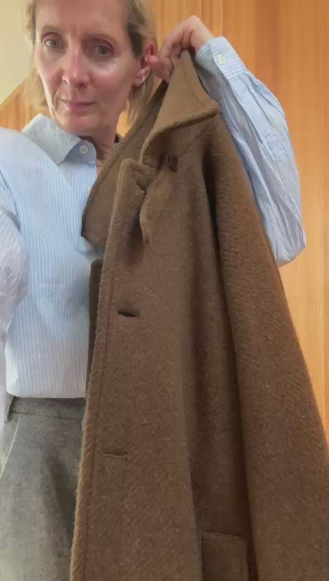 The long men's coat from Ziffow is made of soft Italian wool with a structured and visual twill, which is both warm and light. Due to the generous fit, it can easily be worn over a sweater, cardigan, or pullover. This essential coat combines elegance and authenticity and stands out for its robustness and many refined details.